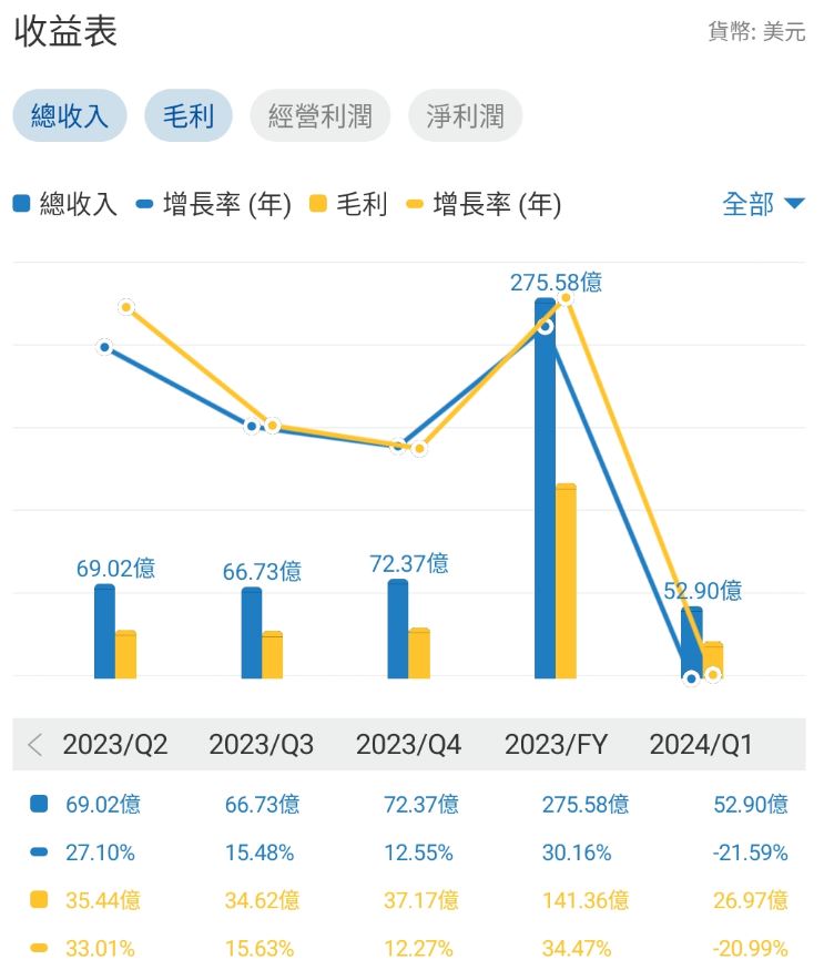 1. 收入、淨利潤及毛利率: