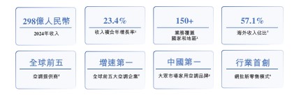 ●空調業務覆蓋150多個國家和地區。根據弗若斯特沙利文的資料,於2024年,按銷量計算,是全球第五大空調提供商,市場份額達7.1%。