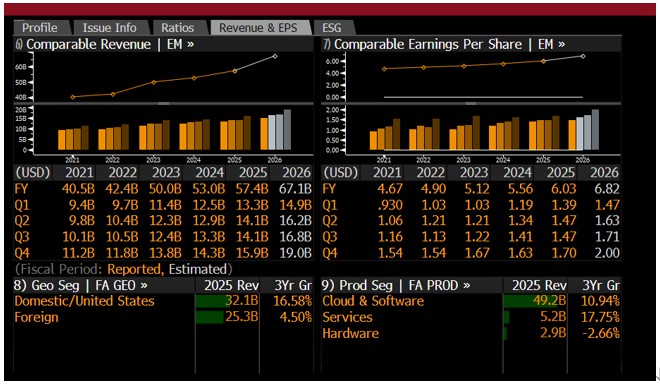 首先公司的賺錢渠道主要是提供企業級軟件、雲基礎設施及相關服務。收入來源包括雲服務訂閱(SaaS、PaaS、IaaS)、軟件授權費、硬體銷售及專業服務。而透過將客戶由傳統許可證模式轉向雲訂閱,實現重複性收入,並利用AI整合提升產品黏性。