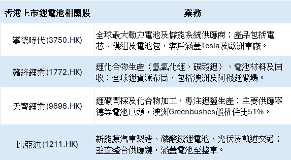 如果想選擇純鋰資源股,可以選擇贛鋒鋰業(1772.HK),其作為上游鋰資源龍頭,直接受惠鋰需求回暖及鋰價上升,而公司礦場自給率達70%,有助以較低成本穩定礦產量及質素,而且其主要客戶包括寧德時代、Tesla供應鏈及歐洲車廠等大廠,需求相對穩定,料公司收入前景樂觀,而公司今年第三季純利大增逾3倍,憧憬鋰價未來持續上升,公司業績將可再交出好表現,但要留意鋰的價格波動大,故上游公司的股價波動性也相對較大。