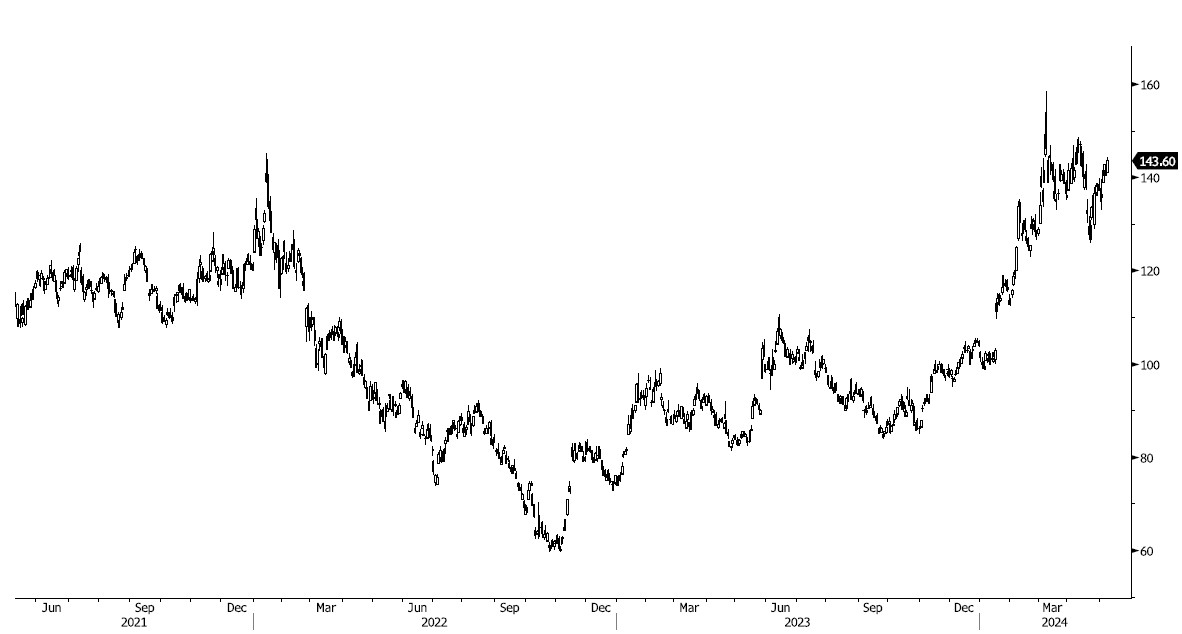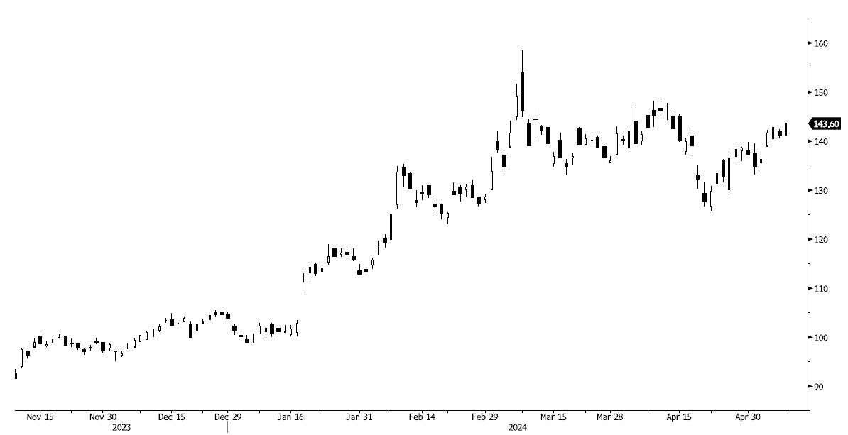 股價走勢圖 6個月走勢圖 3年走勢圖 資料來源:彭博(截至2024年5月8日)