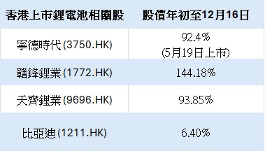 致富研究部整合了香港上市比較熱門的鋰電池相關股:寧德時代 (3750.HK)、贛鋒鋰業(1772.HK)、天齊鋰業(9696.HK)及比亞迪(1211.HK)與大家分析。