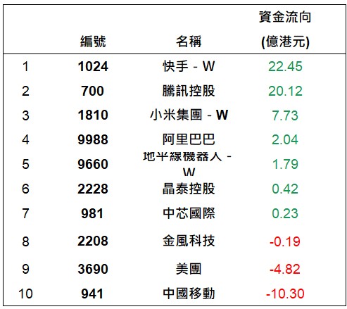 港股通上一交易日十大成交個股資金流排名