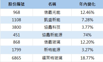 一些在港上市的太陽能相關股份例如