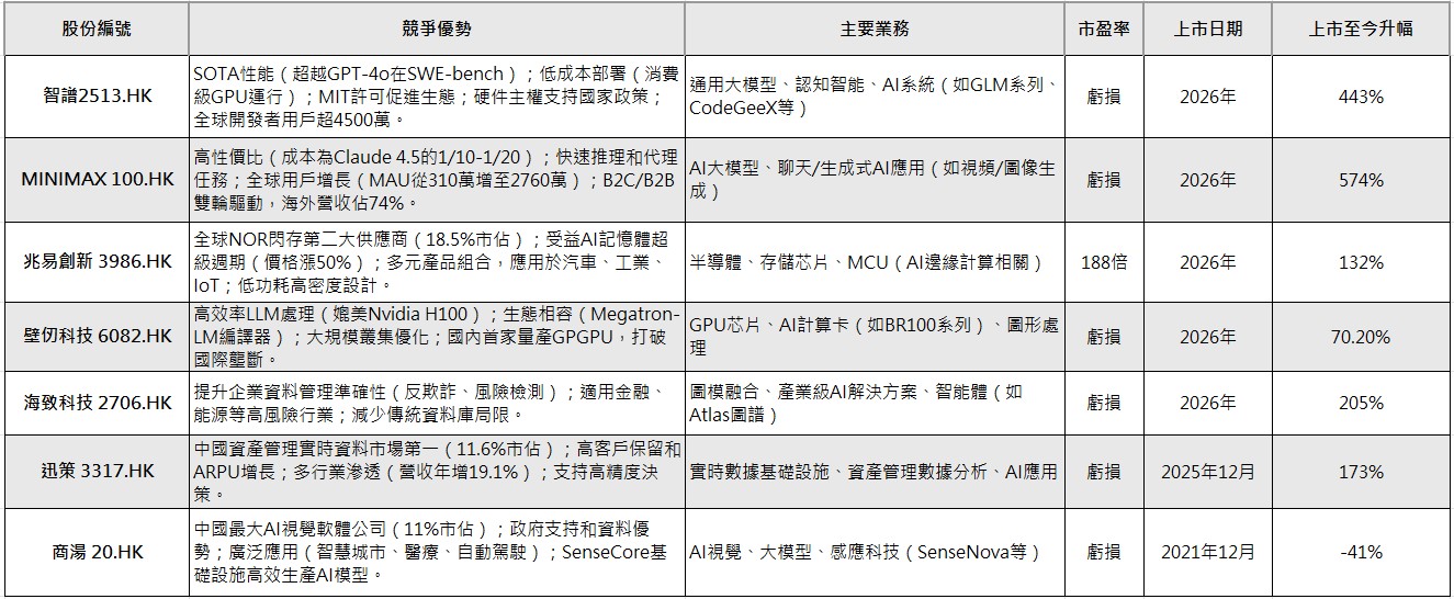 歷史案例:商湯上市後多年仍虧損,股價長期低迷;新股如智譜/MINIMAX雖短期暴升,但若2026-2027年無法轉盈,易出現「見頂回落」。